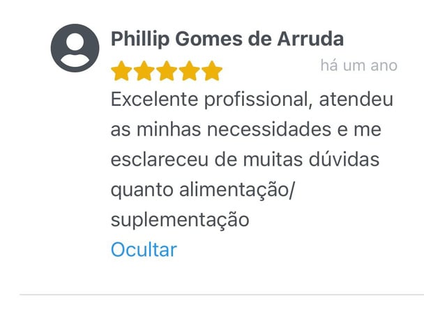 Experimente o futuro da nutrição personalizada com a confiança de resultados reais. Meu atendimento online tem em média 1h de duração e segue o mesmo padrão premium de atendimento da consulta presencial.